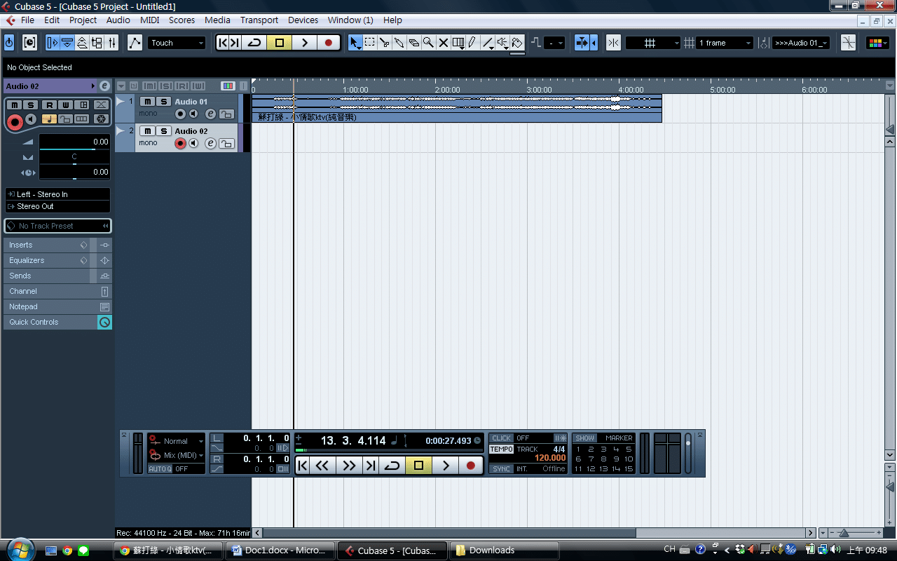 一般在進行歌唱錄音時都會使用錄音軟體,目前有好幾套軟體可供選擇,如Cubase,Nuendo,Pro Tools,Adobe Audition都有Win和Mac的版本,在Mac上還可以選擇Logic pro或是Garage Band等軟體,這裡介紹使用Cubase 5進行歌唱錄音的簡單步驟,使用的麥克風是ATR2100USB。