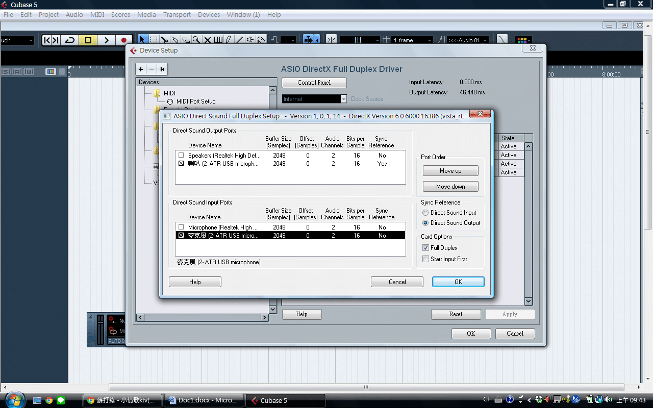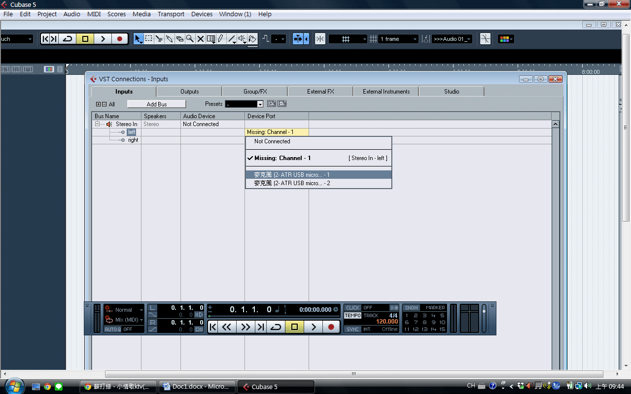 ▲進入VST connection之後把input和output都改成usb麥克風,即完成麥克風設定