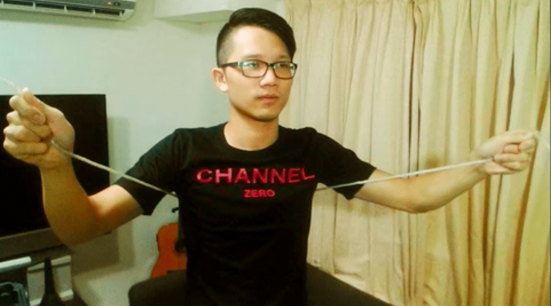 先準備一條童軍繩,沿著腋下繞住自己的胸腔,在胸口打個結,這時只要你使用了胸式呼吸,就會覺得繩子很緊,這是用來提醒自己是否用到了胸式呼吸,