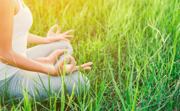 用鼻子分5秒慢慢地吸氣,想像你在森林裡,呼吸大自然的芬多精,深呼吸。