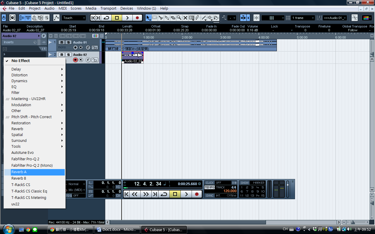 可以加入,這些效果稱為plugin,有些是cubase內建的,也可以另外增加外掛。以reverb A這個效果來舉例,點選後