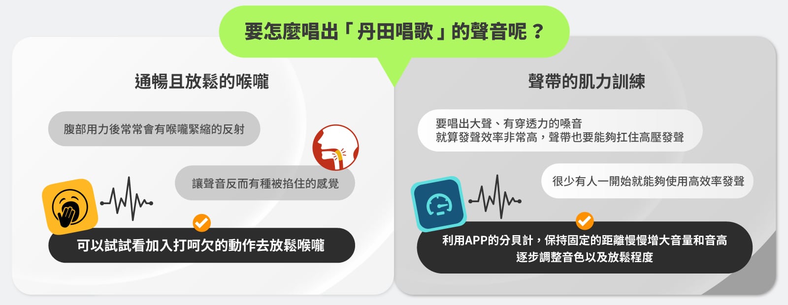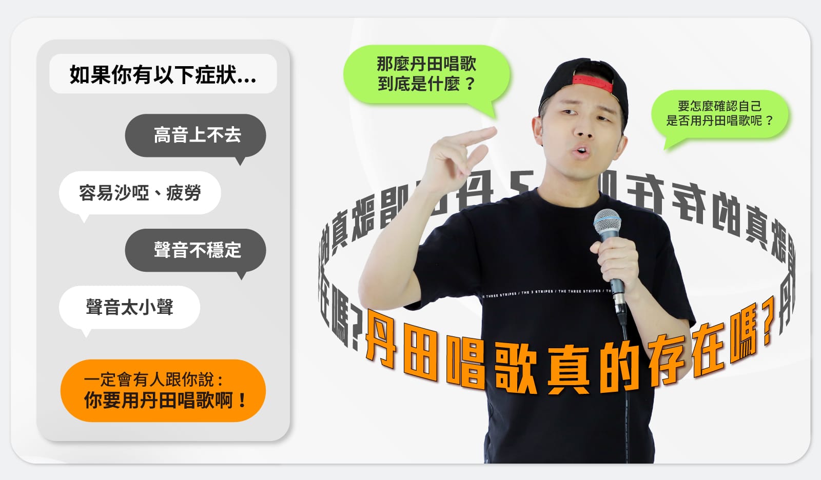 如果你有高音上不去、容易沙啞、疲勞、聲音太小聲或是不穩定等症狀,一定會有人跟你說:「你要用丹田唱歌啊!」
