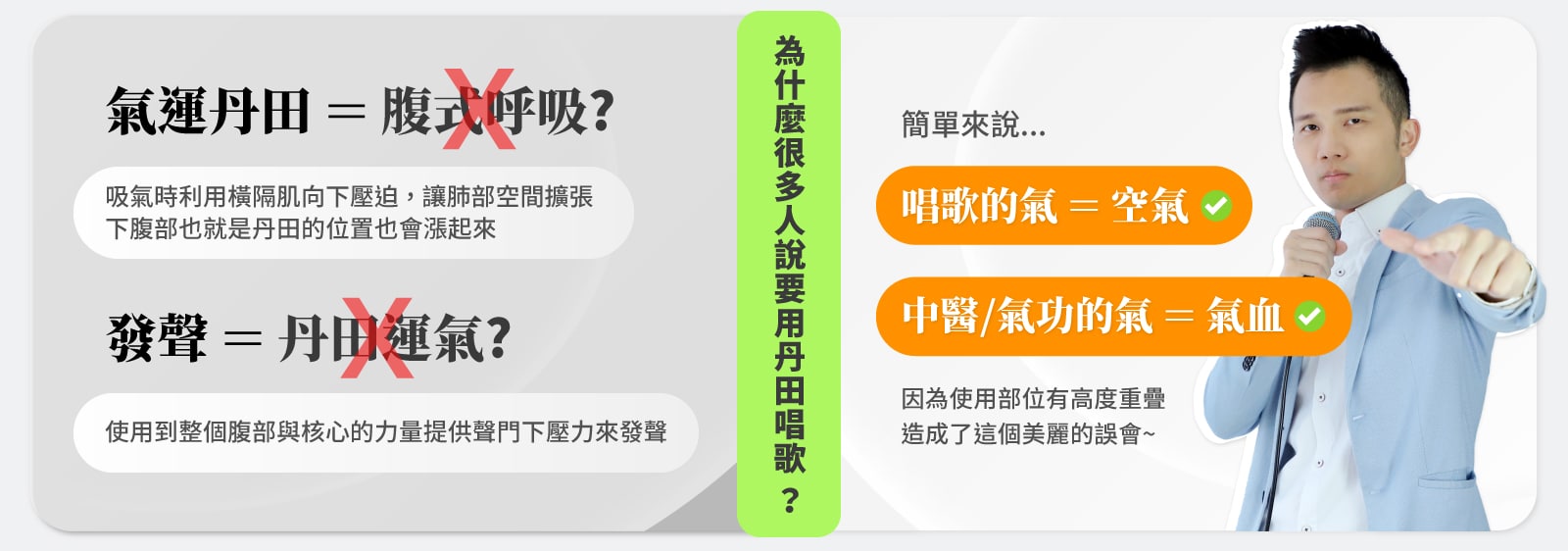 所以簡單來說,最大的差別就是唱歌的「氣」真的是指空氣,而中醫或是氣功裡的「氣」指的是氣血。因為使用部位有高度重疊,造成了這個美麗的誤會。