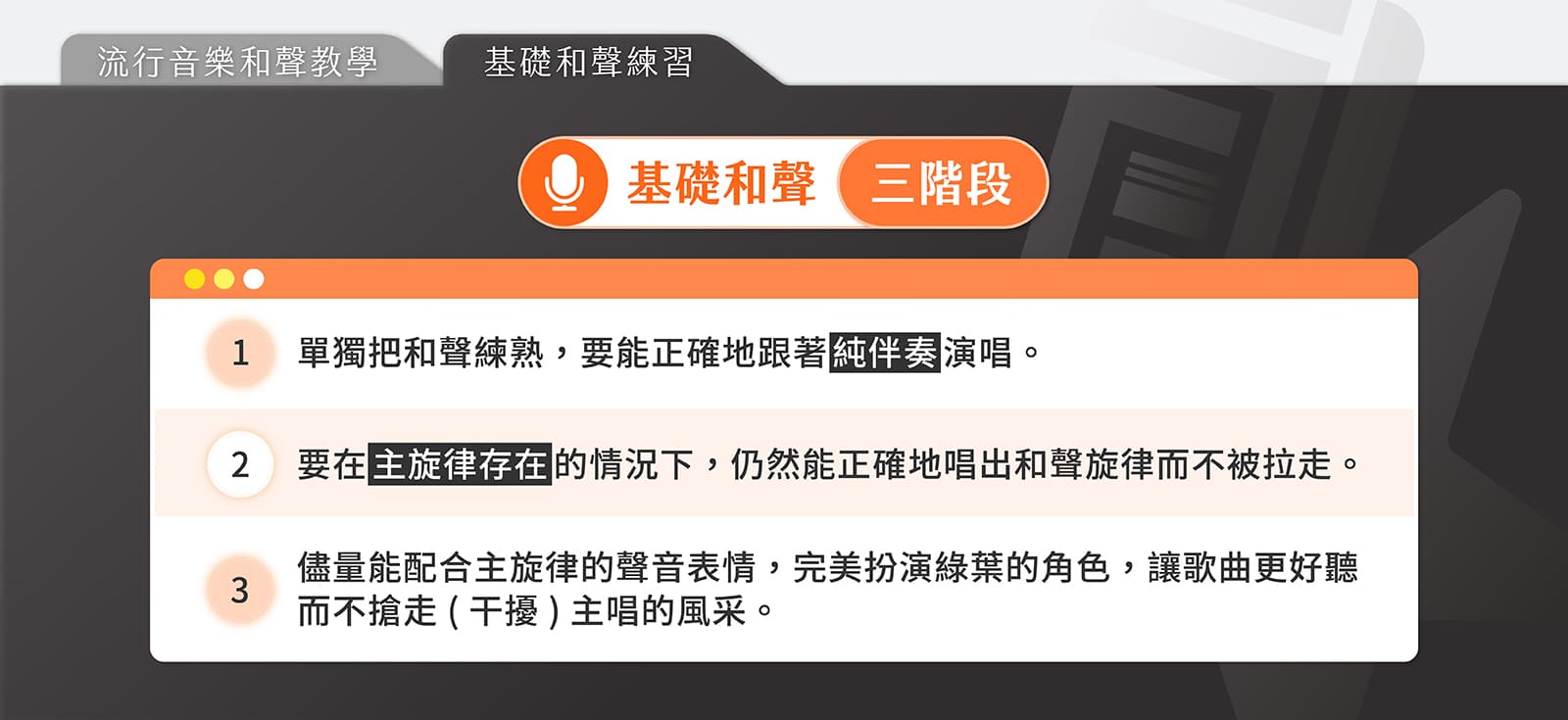 1│單獨把和聲練熟,要能正確地跟著純伴奏演唱。