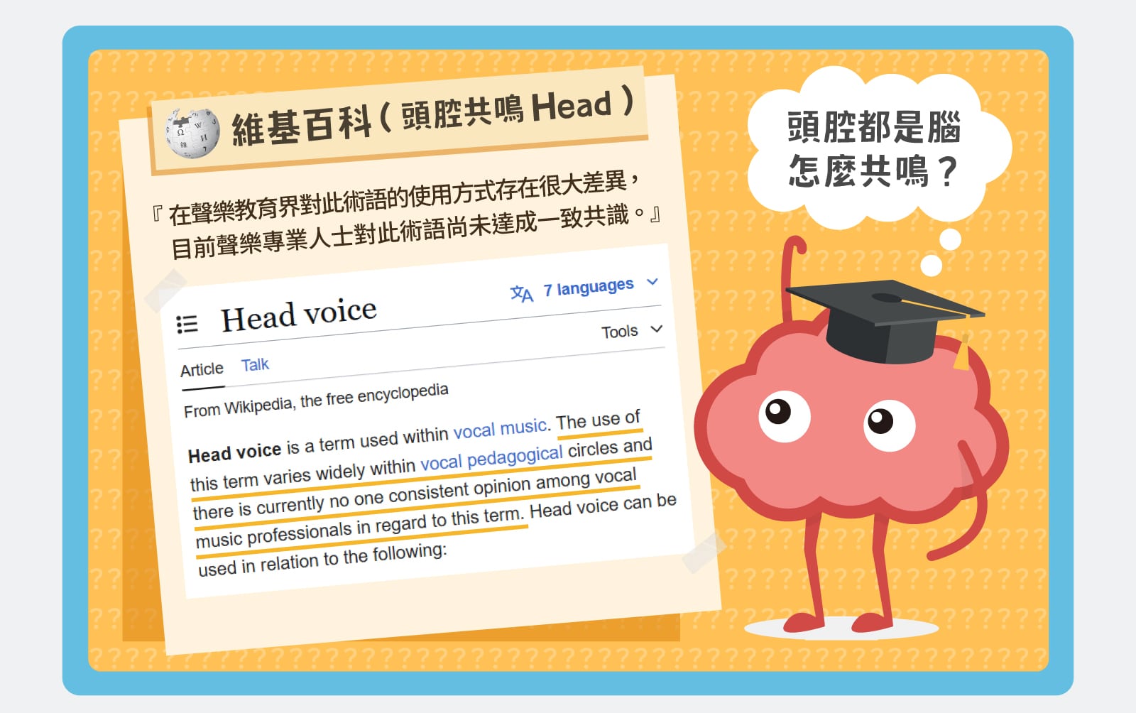 那為什麼大家都一直說頭腔共鳴?難道唱歌的人都民智未開,連基本的科學原理都不懂嗎?當然不是!