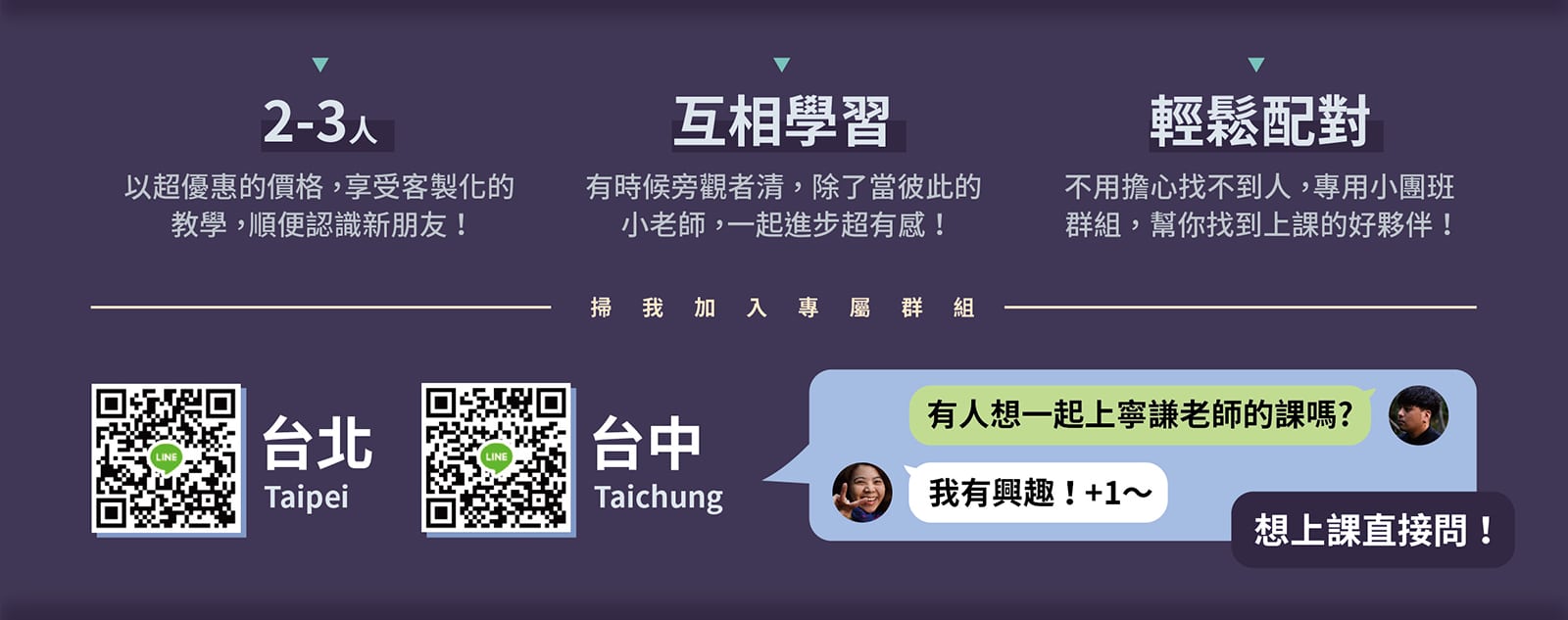 若是不知道怎麼加入,也可以私訊給我們幫你加入群組,群組依照上課地點分類。