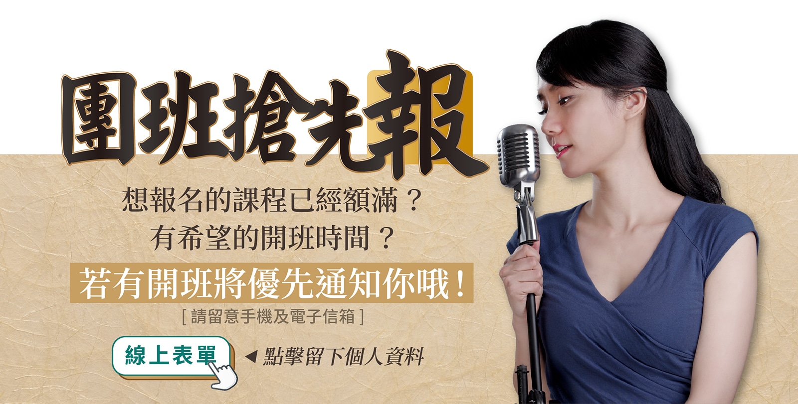 ※每梯次限額20人,報名滿12人開班※