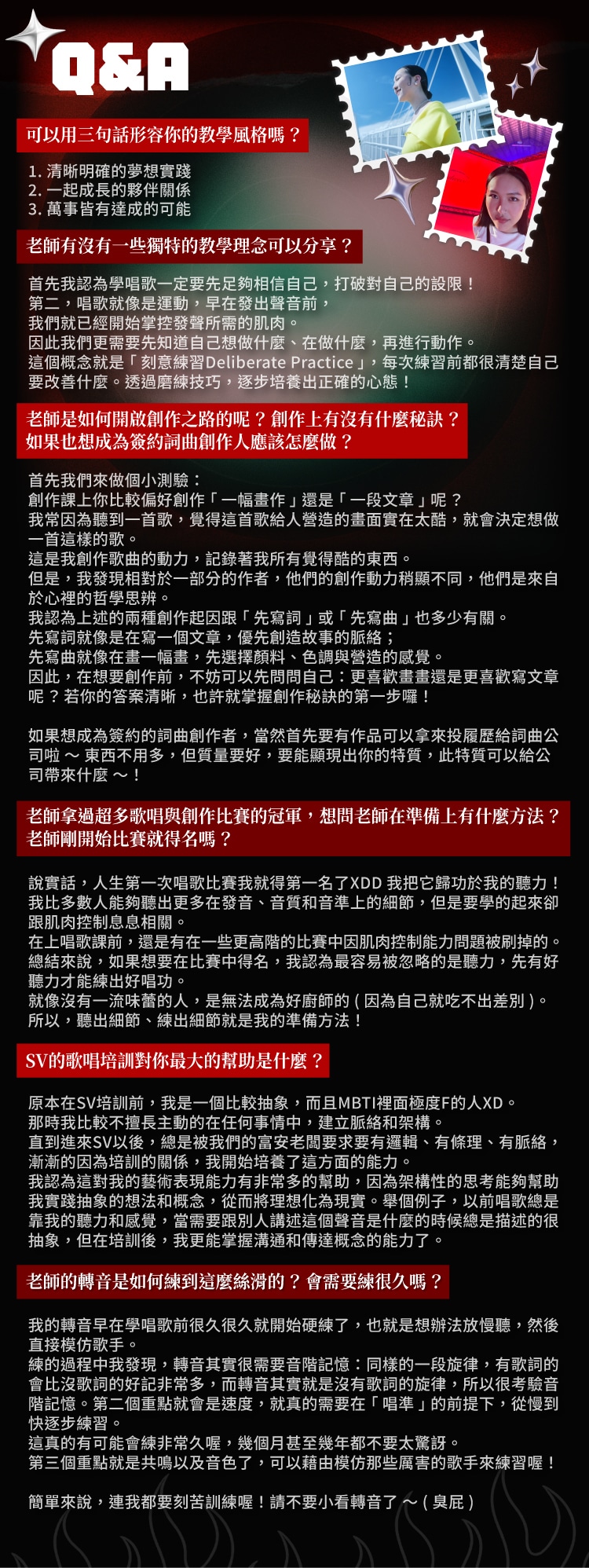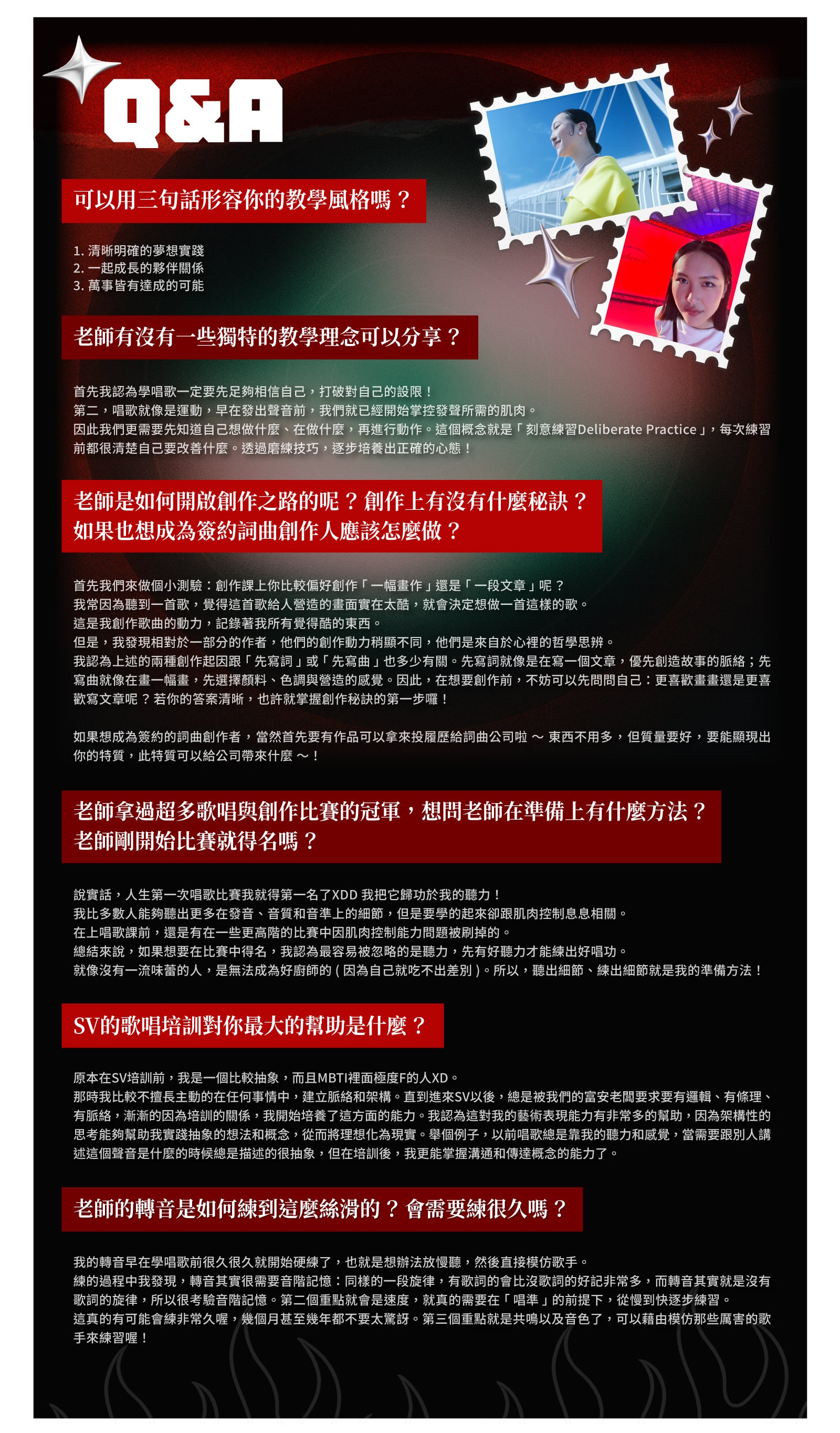 0 |學員回饋| |師資作品| 共同創作、演唱: 作曲: 配唱製作、和聲編寫: 和聲編寫: 相關文章 2017-12-01富安老師閱讀更多 2018-01-02寧謙老師閱讀更多 2018-01-02宇威老師閱讀更多